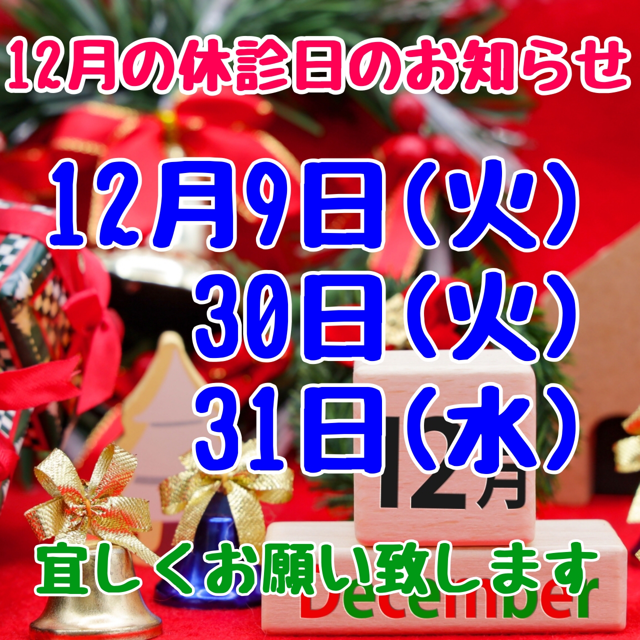 12月の休診日のお知らせ‼️