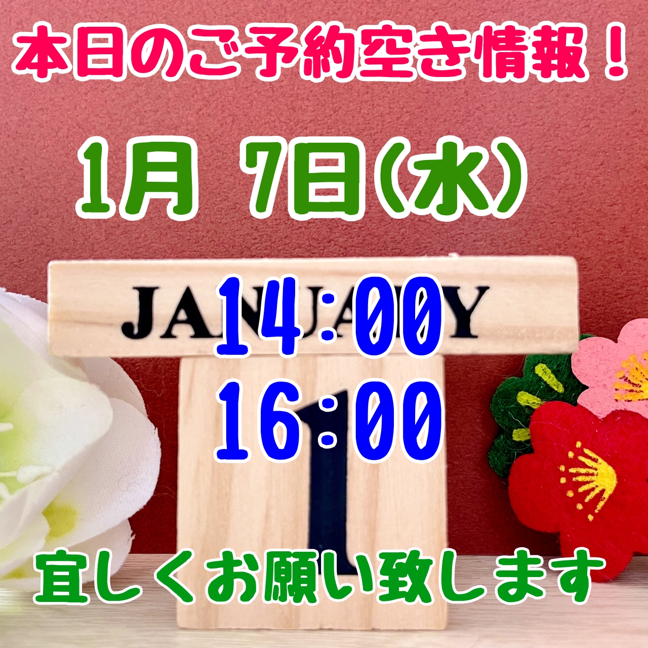 本日のご予約空き情報‼️
